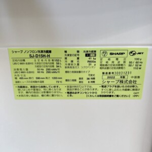 先日横浜市港南区へ、SHARP(シャープ) 2ドア冷蔵庫 SJ-D15H-H(2022年製)の出張買取に行ってきましたのでご紹介します!【製品の特長】
