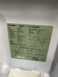 今回買取したのは、ELSONIC(エルソニック)の2ドア冷蔵庫「EJ-R832W」です。本モデルは、コンパクトでありながら、日常生活に十分な機能を備えた冷蔵庫として人気があります