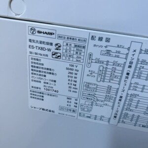 手軽に処分のお手伝いができました。SHARP(シャープ)8.0キロ 電気洗濯乾燥機 ES-TX8D-W 2019年製