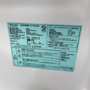 今回は以下の製品の査定内容を詳しくご案内します。TAG label by amadana(タグレーベル アマダナ)2ドア冷蔵庫 AT-RF85B 2020年製