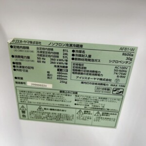 引っ越しで不要になったこちらの製品をお引き受けしました!IRIS OHYAMA(アイリスオーヤマ)81L 2ドア冷蔵庫 AF81-W 2018年製