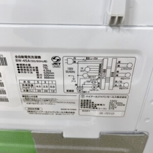 本日は以下の製品の査定内容をご紹介します。オリジナルベーシック 4.5キロ 全自動洗濯機 BW-45A 2024年製