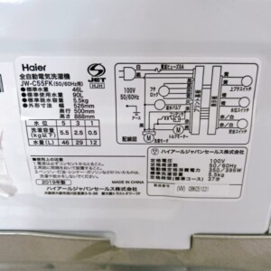 Haier(ハイアール)5.5キロ 全自動洗濯機 JW-C55FK 2019年製