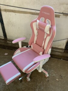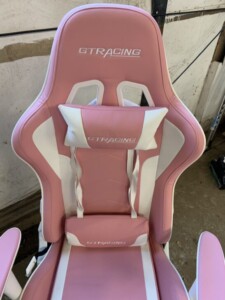 オットマン付きのフットレストシリーズで、頸、肩、腰の3点をしっかり支えることで、長時間のゲーミングや作業にも適しています。スタイリッシュなデザインも人気の理由です。今回のお品物は若い女性にも人気のホワイトとピンクのカラーです。製品の状態