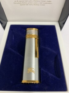 高価買取対象品として扱わせていただきました。このBurberrysのガスライターは、シルバーの輝きが特徴的な一品です。