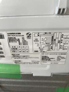 先日、Haier(ハイアール)の全自動洗濯機「BW-45A」を出張買取いたしました。このモデルは、単身者や小規模なご家庭に適したコンパクトで高機能な洗濯機として人気があります