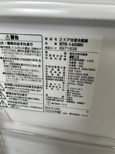 NITORI(ニトリ) 2ドア冷蔵庫 140L NTR-140WH 2024年製