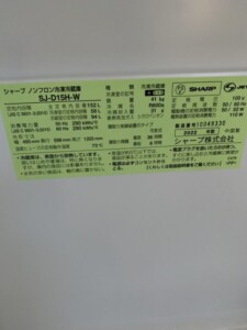 お客様からお譲りいただいた「SJ-D15H-W」は、使用期間が短かったためか、経年劣化をほとんど感じさせない非常に綺麗な状態でした