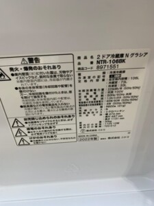 本日は、ニトリの2ドア冷蔵庫「NTR-106BK」をお買取りしました。以下に商品の特徴、商品の状態、現場の状況について詳しくご紹介いたします