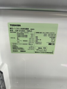 TOSHIBA(東芝)326L 3ドア冷蔵庫 GR-V33SC(WU)2024年製