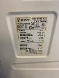 SHARP(シャープ)7.0キロ ドラム式洗濯乾燥機 ES-S7D-WL 2019年製