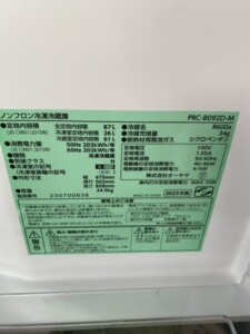 IRIS OHYAMA(アイリスオーヤマ)87L 2ドア冷蔵庫 PRC-B092D-M 2023年製