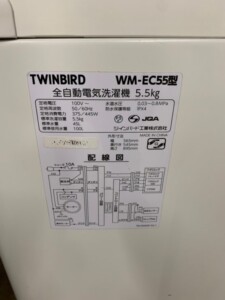 TWINBIRD(ツインバード)5.5キロ 全自動洗濯機 WM-EC55 2020年製