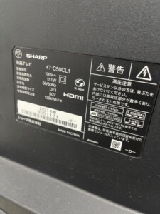 先日、SHARPの4Kテレビ「AQUOS 4T-C50CL1」を買取させていただきました。以下に、商品の特徴、状態、そして現場の状況について詳しくご紹介いたします。