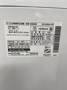 HITACHI(日立)8.0キロ 全自動洗濯機 BW-V80H ビートウォッシュ 2022年製