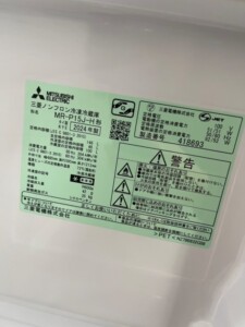 MITSUBISHI(三菱)146L 2ドア冷蔵庫 MR-P15J-H 2024年製