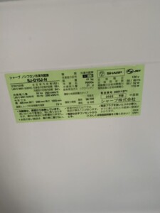 お引き受けした商品はこちらです!SHARP(シャープ)152L 2ドア冷蔵庫 SJ-D15J-H 2022年製
