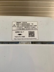 本ブログでは、この商品の査定内容を詳しくご紹介いたします。AQUA(アクア)4.5キロ 全自動洗濯機 AQW-S45J(W)2020年製