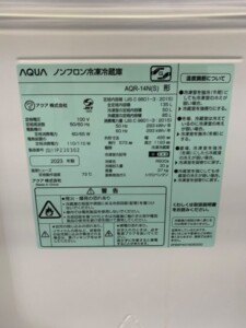 AQUA社の冷蔵庫「AQR-14N」を出張買取いたしました。このモデルは、コンパクトながら多機能で人気の高い製品です。