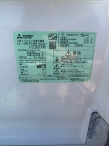 三菱電機の冷蔵庫「MR-P15EF-KK」を買取いたしました。