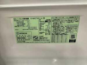 今回はこちらの買取実績をご紹介します!HITACHI(日立)735L 6ドア冷蔵庫 R-WXC74S(X)2022年製