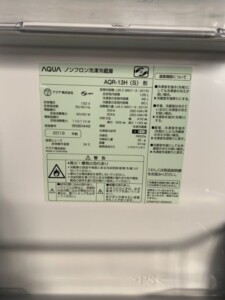 AQUA(アクア)の冷蔵庫「AQR-13H(S)」を出張買取させていただきました