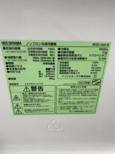 IRIS OHYAMA (アイリスオーヤマ)の冷蔵庫「IRSD-14A-B」を買取いたしました。