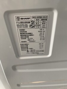 SHARP(シャープ) ドラム式洗濯乾燥機 7.0キロ ES-S7G-WL 2022年製を愛知県名古屋市中区にて出張査定しました!