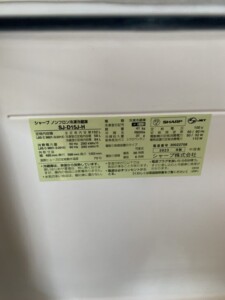 SHARP(シャープ)ノンフロン冷凍冷蔵庫 152L SJ-D15J-H 2023年製を出張査定しました!