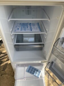外観には目立つ傷や凹みがなく、全体的に綺麗な状態でした。庫内も清潔で、ゴムパッキンや棚板に破損はなく、製氷皿や卵ケースなどの付属品も揃っていました。気になるニオイもなく、多少の使用感はあるものの、丁寧に扱われてきた印象を受けます。お客様には事前に庫内を空にし、冷やした状態でお待ちいただき動作確認を行ったところ、冷却機能も問題ないことを確認いたしました。
