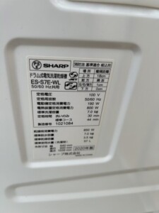 SHARP(シャープ)7.0キロ ドラム式洗濯乾燥機 ES-S7E-WL 2020年製