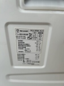 省エネ性能も高いため、中古市場でも一定の需要がある人気の洗濯乾燥機です。SHARP(シャープ)7.0キロ ドラム式洗濯乾燥機 ES-S7D-WL 2020年製