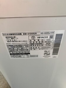 今回高価買取案内となりました商品はこちらです!HITACHI(日立)10.0キロ 全自動洗濯機 BW-X100G ビートウォッシュ 2022年製