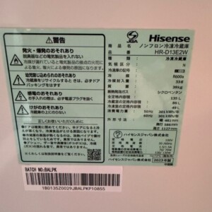 先日、弊社ではHisense(ハイセンス)の冷凍冷蔵庫「HR-D13E2W」を買取いたしました