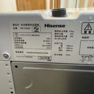 先日、出張買取にてHisense(ハイセンス)の全自動洗濯機「HW-E4503」をお買取りいたしました
