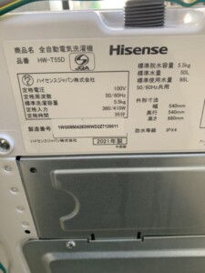 今回は、愛知県名古屋市中村区にて出張買取査定させていただいた「Hisense(ハイセンス) 全自動洗濯機 HW-T55D 2021年製」についてご紹介いたします。