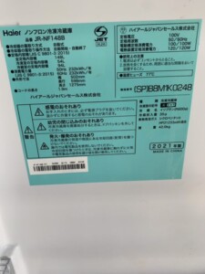 Haier(ハイアール)ノンフロン冷凍冷蔵庫 148L JR-NF148B 2021年製を愛知県名古屋市にて出張査定しました!お客様はお引っ越しを予定されており、引越しの日程にあわせて出張買取へ伺ってきました