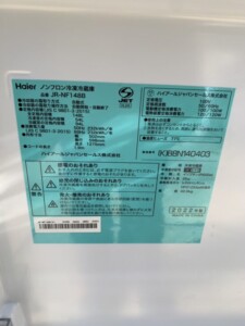 先日、出張買取にてハイアールの冷蔵庫「JR-NF148B」をお買取りいたしました。本製品は、その機能性とデザイン性から多くのユーザーに支持されているモデルです。
