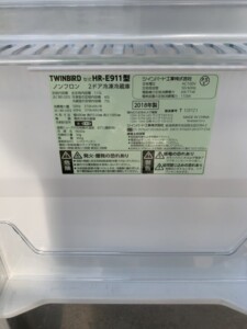 今回は以下の製品をお引き受けいたしました!TWINBIRD(ツインバード)110L 2ドア冷蔵庫 HR-E911 2018年製