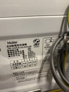 Haier(ハイアール)全自動洗濯機 4.5キロ JW‐U45A 2023年製