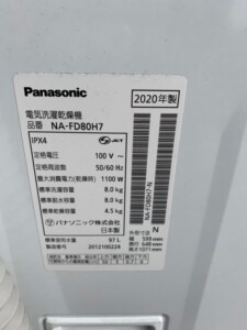 リピーターのお客様より、パナソニックの縦型洗濯乾燥機「NA-FD80H7」を買取いたしました。本製品の特徴や状態、そして買取時の状況についてご紹介いたします