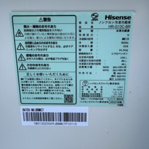 先日、ハイセンスの冷凍冷蔵庫「HR-G13C-BR」を出張買取いたしました。本製品は、コンパクトながらも充実した機能とデザイン性を兼ね備えています。