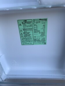 迅速に対応を行いました。Hisense(ハイセンス)154L 2ドア冷蔵庫 HR-D15E 2021年製