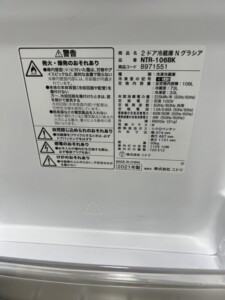査定内容をご紹介します!NITORI(ニトリ)106L 2ドア冷蔵庫 NTR-106BK 2021年製
