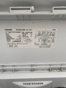 以下に、商品の状態と査定の詳細をご説明いたします。TOSHIBA(東芝)4.5キロ 全自動洗濯機 AW-45M7 2019年製