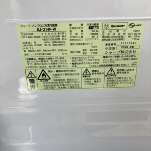 先日、出張買取にてSHARP製の2ドア冷蔵庫「SJ-D14F-W」をお買取りいたしました。