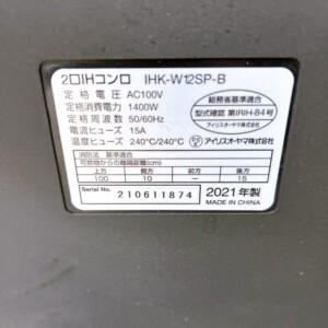 IHコンロは使用による焦げ付きが残ることが多いですが、今回の品は軽度の使用跡のみで、比較的状態が良好でした。また、電源コードや専用の取扱説明書も揃っており、付属品が完備されていたため、査定をスムーズに進めることができました