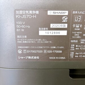 SHARP(シャープ) 加湿空気清浄機 KI-JS70-H 2020年製を出張査定しました!