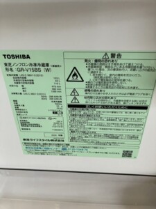 先日、東芝の冷蔵庫「GR-V15BS(W)」を出張買取いたしました。本製品は、コンパクトながら使い勝手の良いデザインと機能が特徴のモデルです