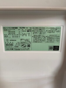 今回は【HITACHI(日立)のノンフロン冷凍冷蔵庫 R-27RV 2022年製】を北海道札幌市にて出張査定いたしました。ファミリー層に人気の3ドア冷蔵庫であり、人気のモデルです。今回も製品の特徴や査定ポイント、中古市場の相場について詳しくご紹介したいと思います。